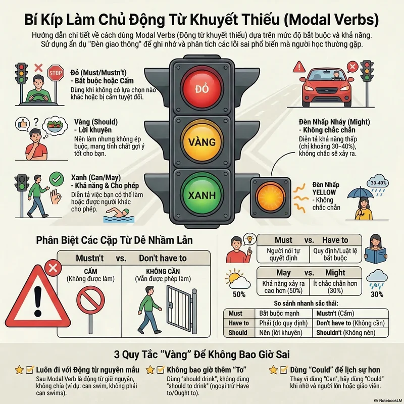 Level 2Học các động từ khuyết thiếu can/could, must/have to, should/ought to, may/might để nói về khả năng, nghĩa vụ, lời khuyên và xin phép. Phù hợp lớp 4-5.