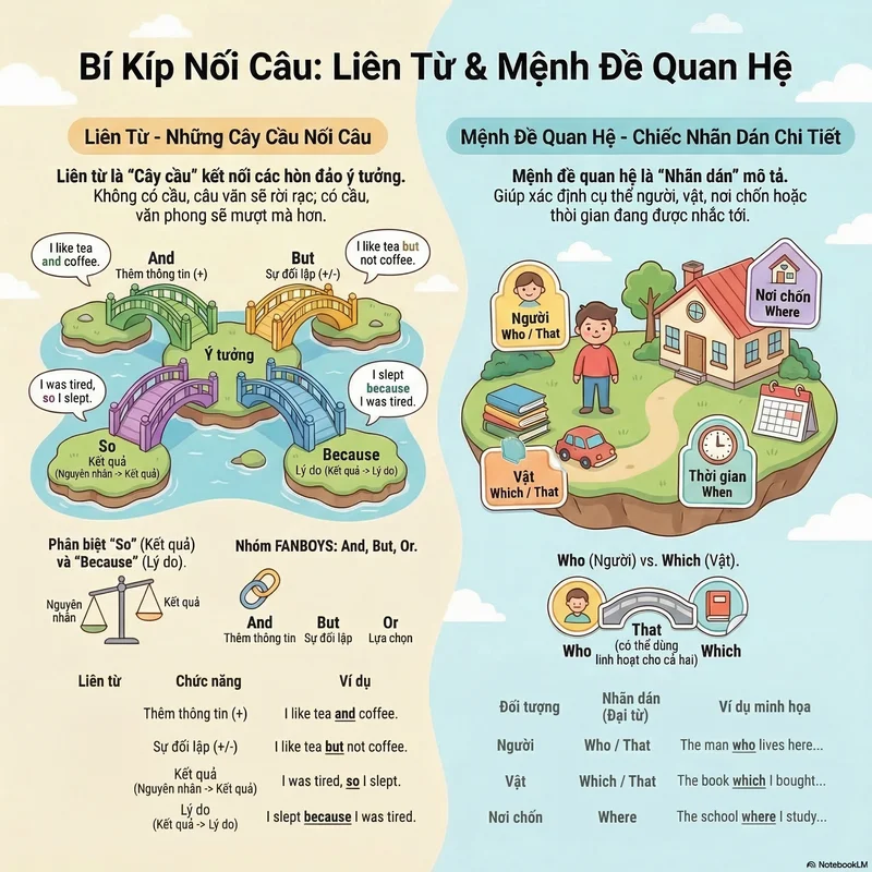 Conjunctions & Relative Clauses · Liên Từ & Mệnh Đề Quan Hệ